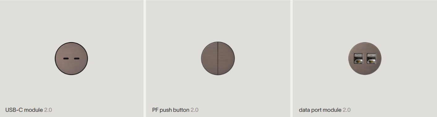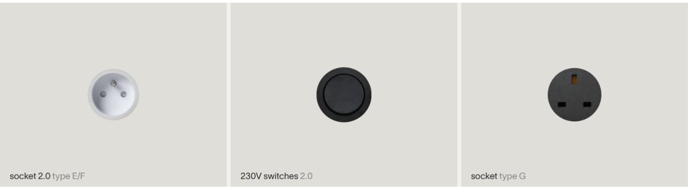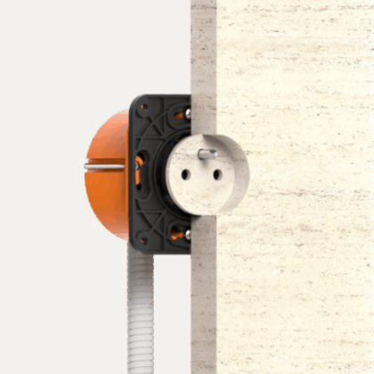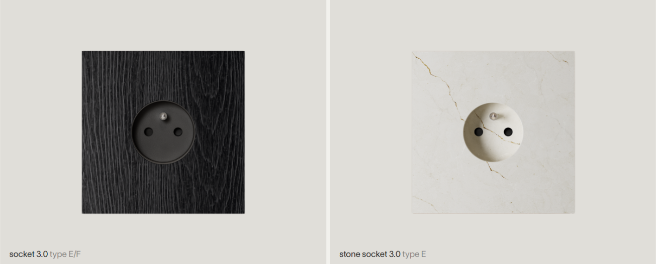 Design a integrace: nejnovější řada skutečně bez viditelného rámečku. Zásuvky jsou zapuštěny zcela v rovině s povrchem. U verze pro kámen (stone 3.0) lze dokonce viditelnou část nahradit tenkým plátkem (3 mm) stejného materiálu, jako je obklad, pro maximální maskování (to ovšem možné pouze u zásuvky typu E).