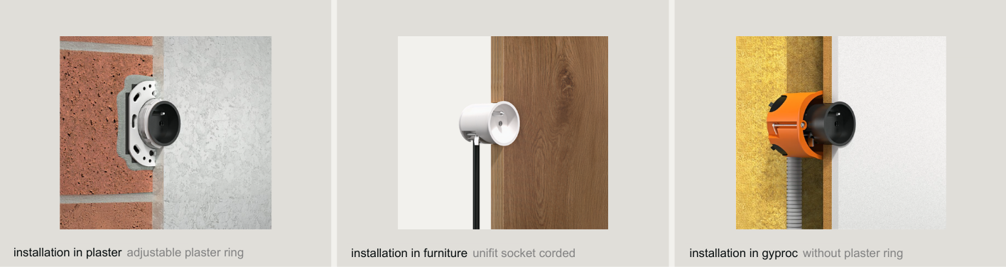 Unifit je jediný modul typu „vše v jednom“, který se snadno instaluje bez instalační redukce do omítky, dřeva i kamene. S kabelem nebo pevně zapojený.