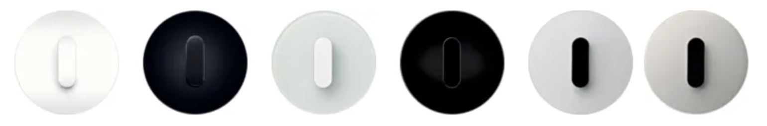 - Rámečky: polární bílá lesklá, černá lesklá, hliník/polární bílá, hliník/černá, nerezová ocel/polární bílá, nerezová ocel/černá, sklo polární bílá, sklo černé.
