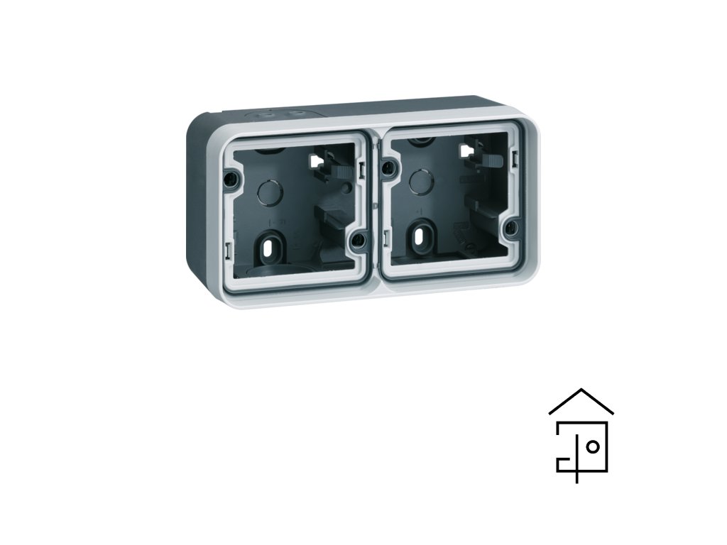 2-fold box with frame and gland, empty for instrument, IP 55, Berker W.1, grey