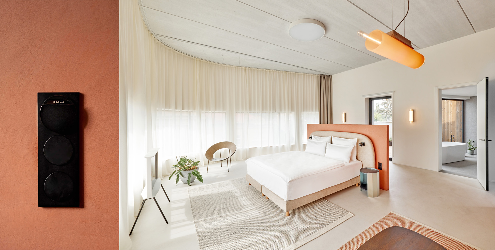 Quadratischer Rahmen, runder Mittelteil. Hochwertiger Kunststoff und Glas in strahlendem Weiß oder sattem Schwarz. Die Schalter der Serie berker R.3 zeichnen sich durch ihre Kontraststärke aus.