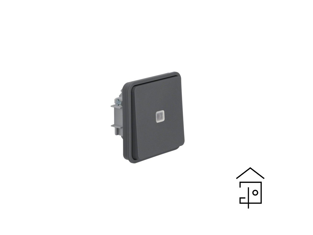 Push-button insert, change-over contact, illuminated surface-mounted/flush-mounted with lens, Berker W.1, grey matt