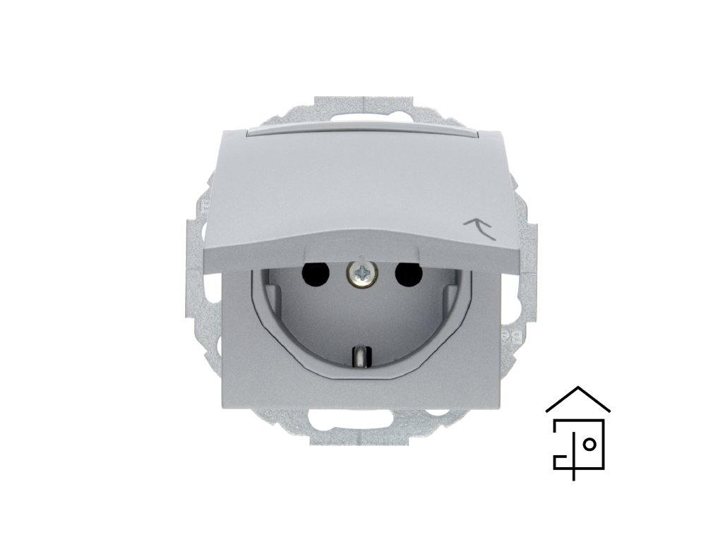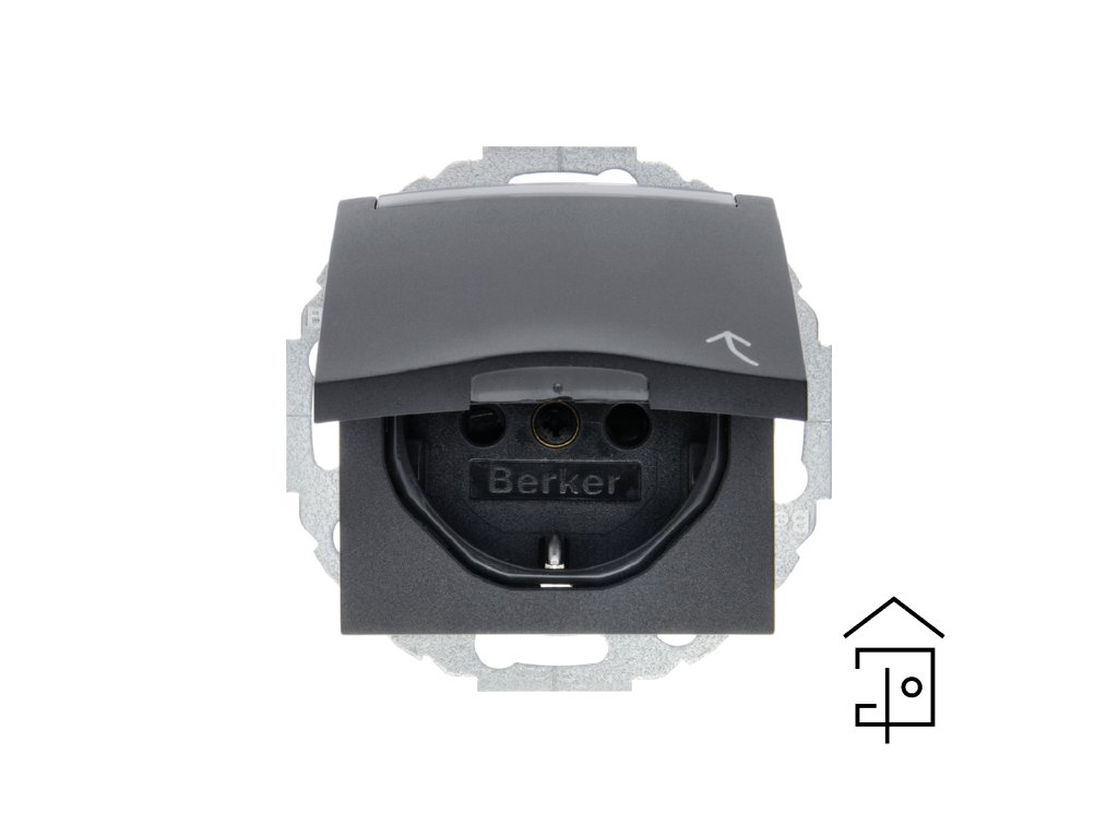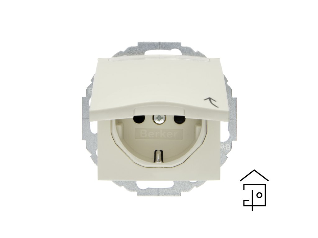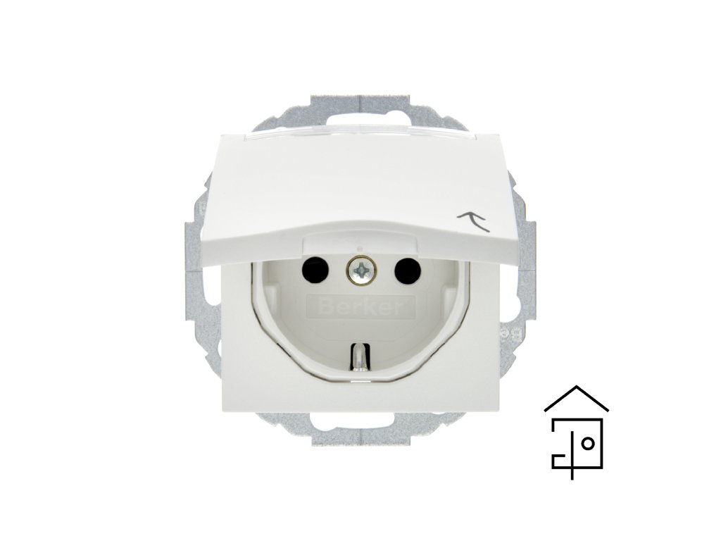 SCHUKO socket outlet with hinged cover, labelling field, enhanced contact protection, installation position variable in 45° steps, Berker S.1/B.3/B.7