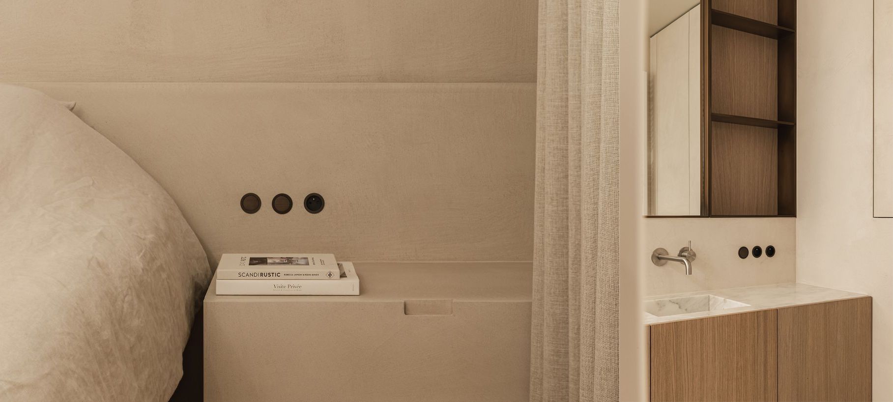 Schalter, Taster und Steckdosen in Holz, Furnier und Stein