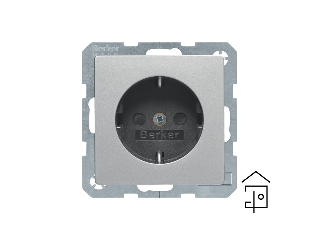 SCHUKO socket outlet with labelling field, enhanced contact protection, screw-in terminals, Berker Q.1/Q.3/Q.7/Q.9