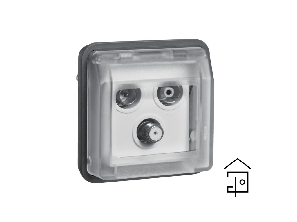 Aerial sockets insert 3hole with hinged cover surface-mounted, single socket Berker W.1, grey matt
