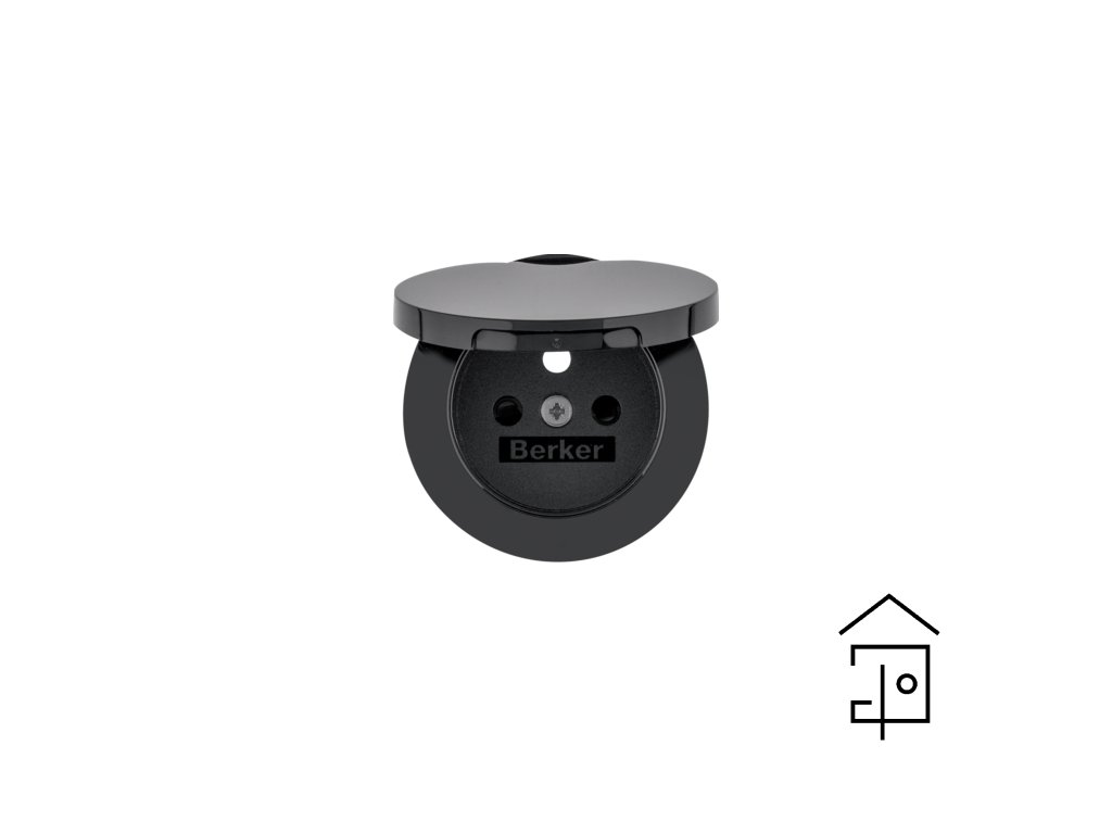 Centre plate with lid for socket with grounding pin, Berker R.1/R.3/R.8