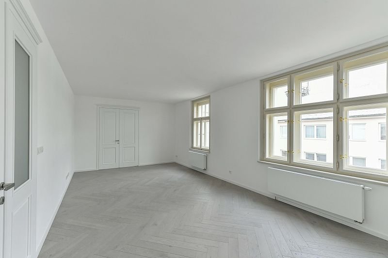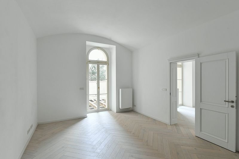 The selection and concept of the interior was created by the OOOOX studio. The apartments are finished to a high standard, including wooden floors, which were designed as a limited edition by the leading Italian flooring manufacturer Foglie d'Oro, as well as interior cassette or double-leaf doors, large-format Italian tiles and luxury sanitary ware from leading German brands. The atmosphere of the house is enhanced by the common areas, which, in addition to restored historical elements, include custom lighting designed by the Dechem studio and an elevator decorated with onyx stone.
