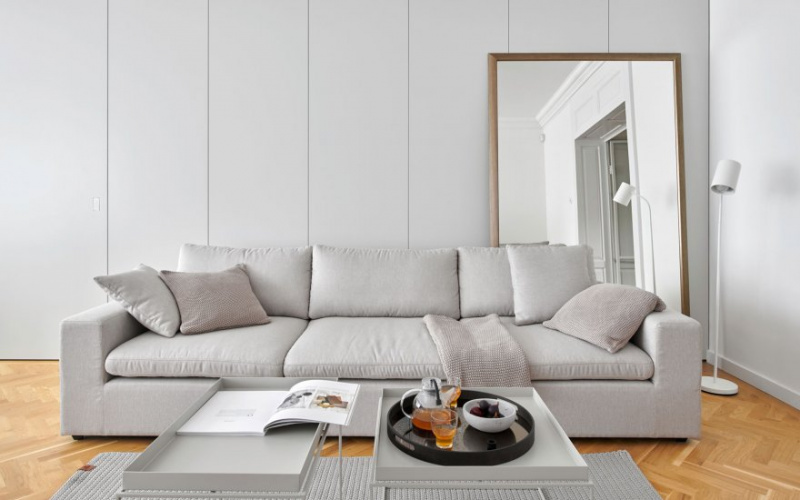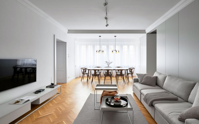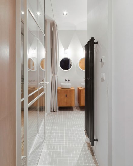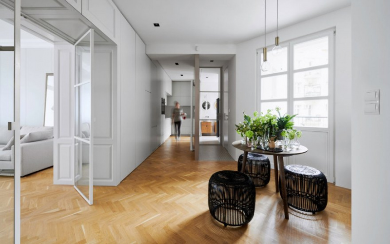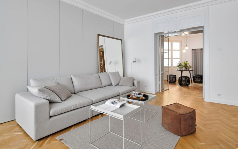 The great advantage of the interior is the high ceilings, corresponding to the age of the house and the location. The architects therefore wanted to create an open space that would accept the original elements that give the apartment a distinctive character.