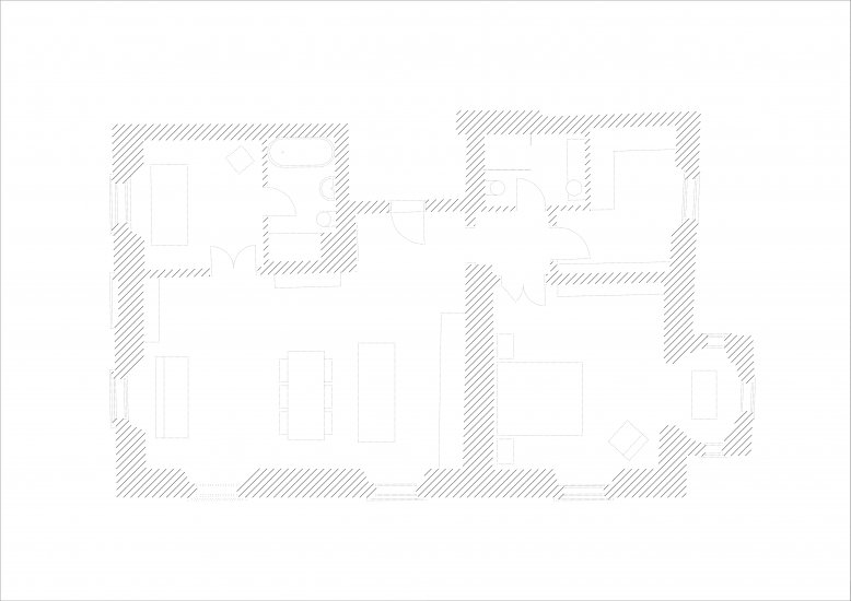 The original ideas of the brave owners were completely different from our final design. It developed dramatically during construction-archeological works. The historic wooden ceiling and original frescoes were hidden above the plasterboard ceiling. We could not leave this historical trace hidden and left its revival to restorers. We contrasted the decorative fragments with raw and industrial elements and materials in combination with modern solitaires.