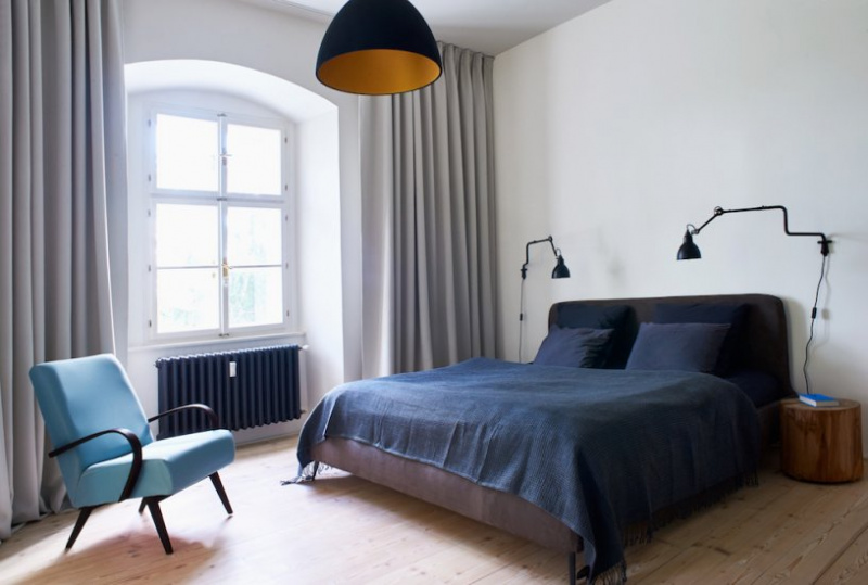 There was once a chapel in the bedroom area. Here, together with the window, it is possible to separate it with a curtain that covers the perimeter walls of the bedroom. Behind the curtains, a scene covered by a curtain is created.