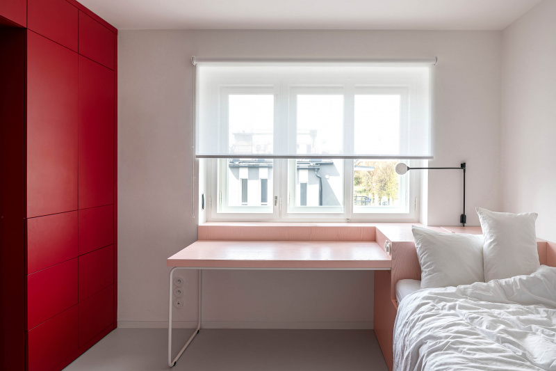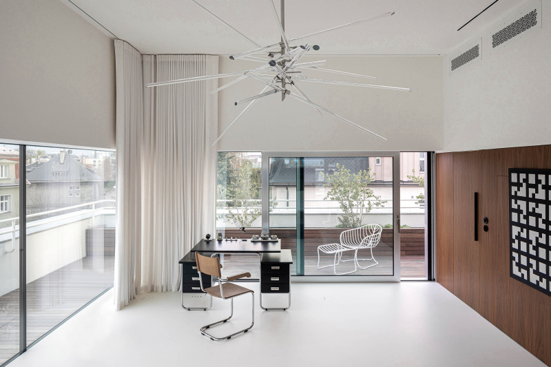 The selection of switches and other control elements also fits into the concept of reviving the atmosphere of functionalism in the interior. The choice fell on porcelain rotary switches and sockets berker serie 1930 and berker R.classic made of high-quality white plastic from the company Hager, to whose portfolio berker switches and sockets belong. Depending on the context, both black and white switches were selected for individual parts of the interior. Although they hide the latest technology and precise workmanship under the retro exterior, it is already clear from the name of the berker series 1930 design series that these wiring control elements proudly refer to the legacy of the 1930s in their appearance. "It's no wonder that berker series 1930 rotary switches, whether in porcelain or bakelite design, were also used in such historic gems as the Tugendhat villa, the cubist Bauer villa or the monasteries in Český Krumlov," calculates Thomas Grund, director of Hager in Czech republic. The berker R.classic switches were chosen for the upper floors in the bathrooms and children's rooms. Although their rotary mechanism refers to the retro rotary switches of the First Republic, they bring their appearance to the 3rd millennium. A more modern way of controlling lighting and electrical devices is made possible by the TS sensors used in the parents' bedroom, also from the Hager company. All Hager wiring devices for the interior were supplied by the MONOBRAND design store.