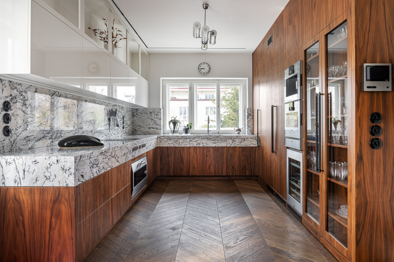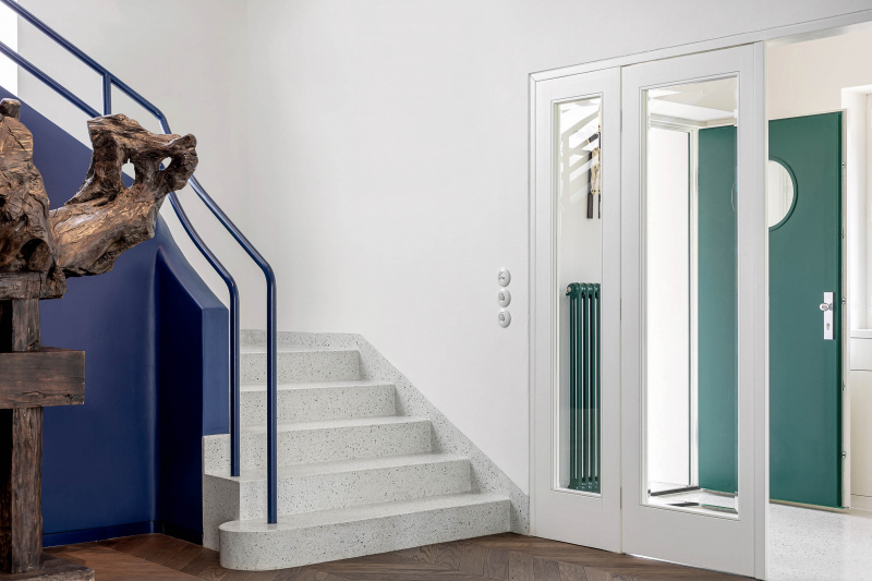 If the exterior of the renovated villa puts a smile on your face, then you will be delighted with its interior. The perfect fusion of original functionalist elements and current trends and requirements for modern living is signed by Jana Trundová from the MIMOKOLEKTIV studio. "I approached the interior design with respect for the functionalism and applied art of the 1930s. After all, designing the interior of the house under which Bohuslav Fuchs may have been signed caused a certain sense of responsibility in me from the beginning. I put the greatest emphasis on detail and atypical, author's production. I was looking for connections between my work and functionalism. I implemented elements of minimalism into the villa and subsequently intentionally disrupted their harmony, experimented and created various surprises," explains the interior designer. In the villa you will find a whole range of rich colors and distinctive stone structures. The green color symbolizes the transition of green from the exterior to the interior. The color red is the color of the owner's temperament and generally the color of family warmth, while pink is the favorite color of girls. The ground floor of the villa is kept in black and white.
