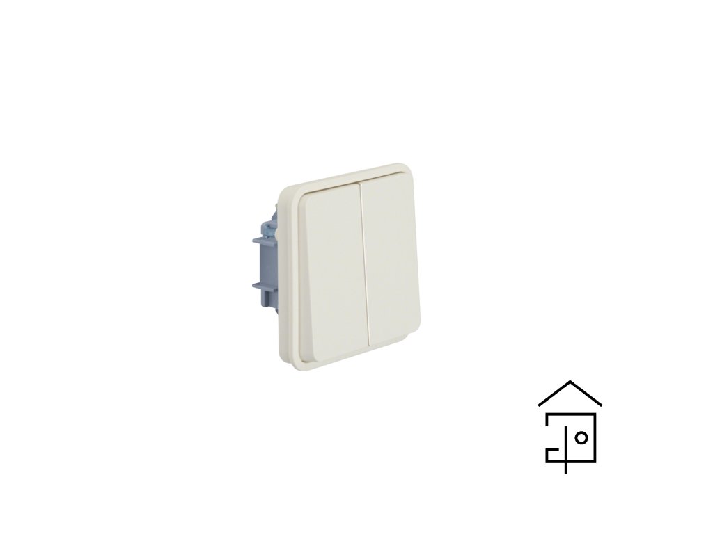 Series switch insert with rocker 2gang surface-mounted/flush-mounted, common input terminal Berker W.1, polar white matt
