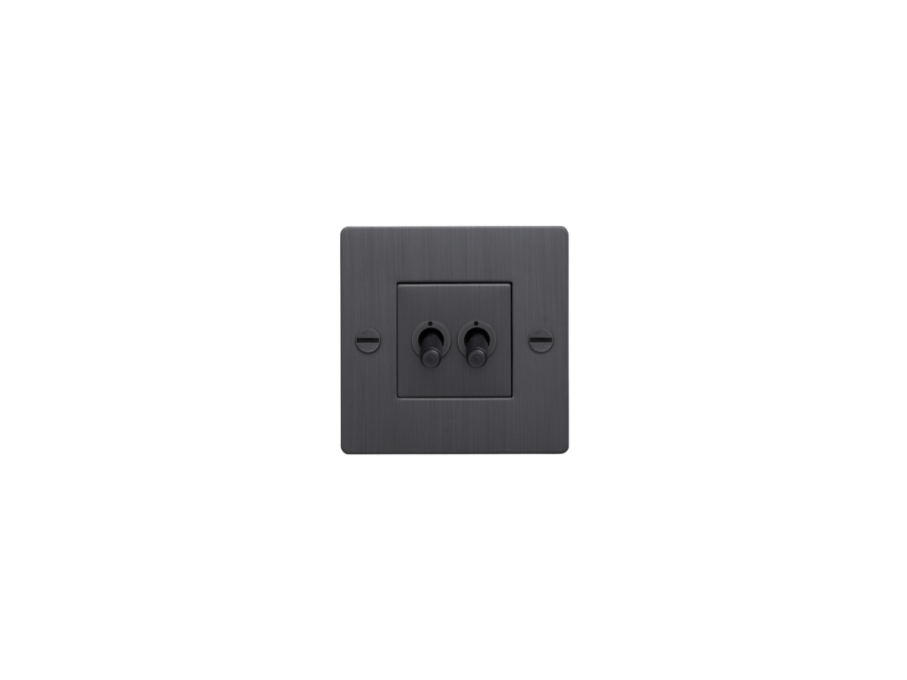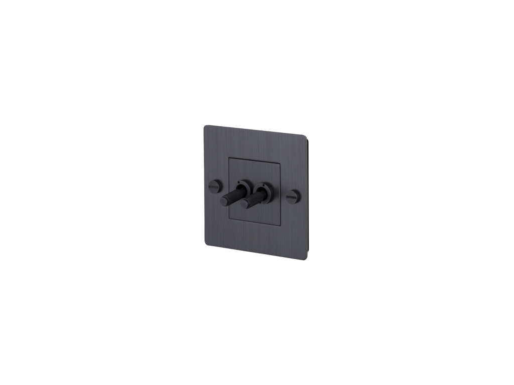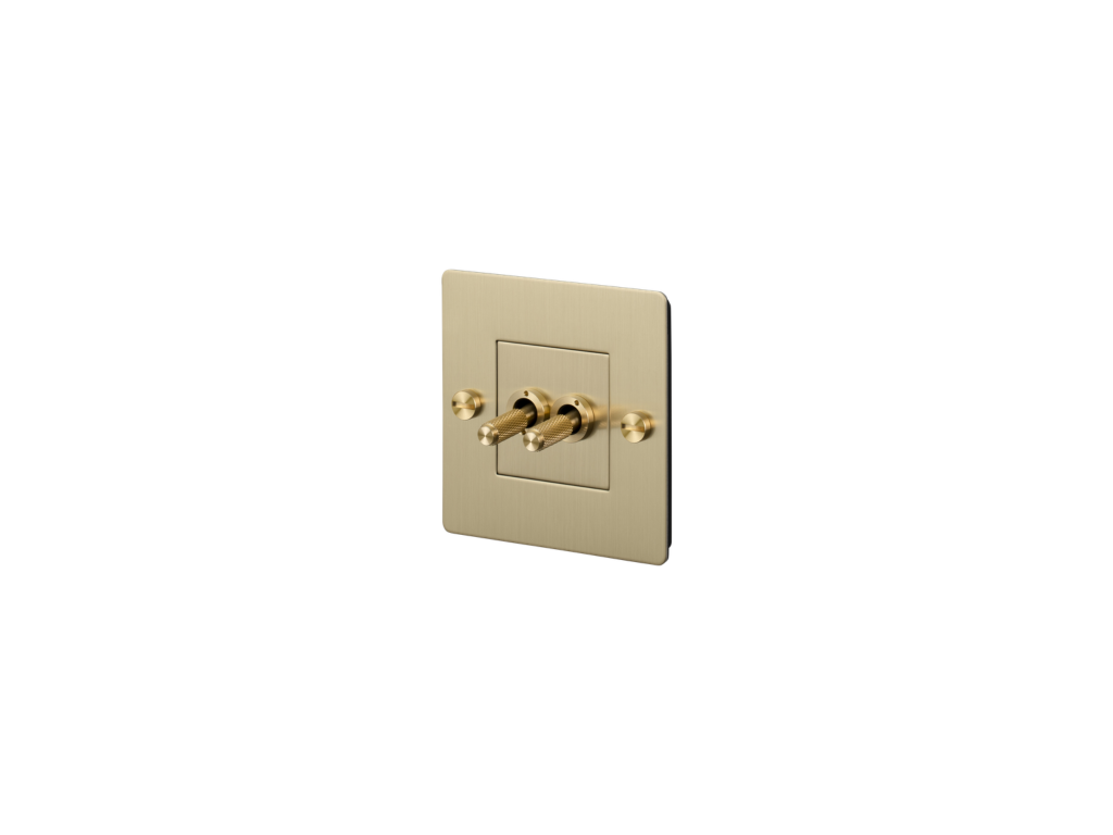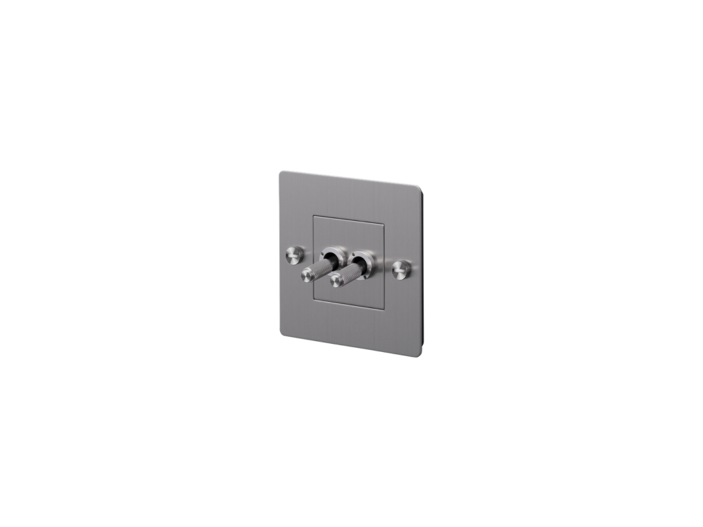 Dvojitý páčkový vypínač je vyroben z masivního kovu s křížovým vroubkováním. Tento přepínač je střídavý (řazení 6) - lze jej ovládat ze dvou míst. Jsou k dispozici v pěti různých povrchových úpravách a lze je použít v kombinaci s B+P stmívači, zásuvkami a zásuvkami USB.