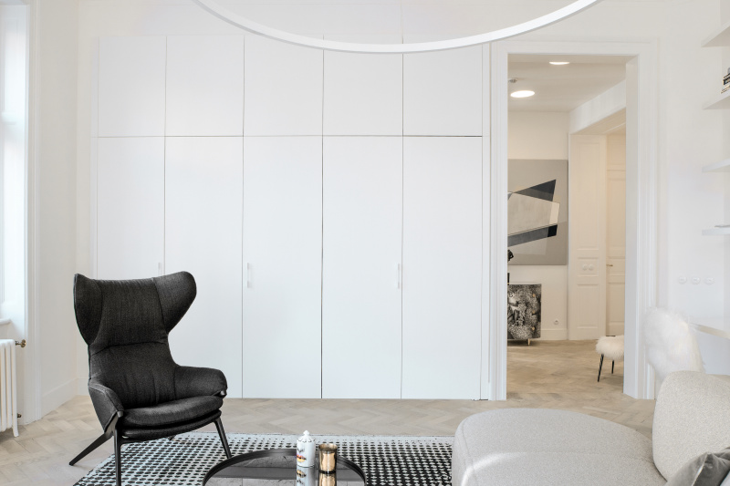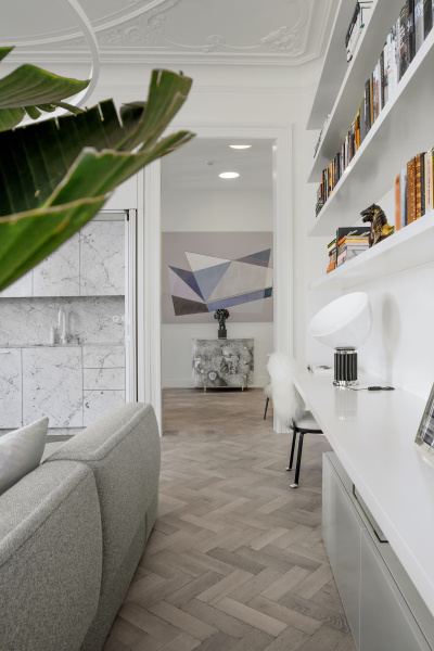 Interiérová designérka Ivanka Kowalski stála před skutečnou výzvou: zrekonstruovat malý byt v centru Prahy se zcela nevyhovující dispozicí do podoby naplňující dnešní představy o kvalitním bydlení. Ačkoliv investor bude byt užívat spíše příležitostně než pro stálé bydlení, už samotná lokalita – reprezentativní pražská Pařížská ulice – nedovolovala v rekonstrukci uvíznout někde na půl cesty. Byt v secesním domě skrýval několik původních prvků, které si přímo říkaly o zachování a znovuuvedení do života: štukové stropy, původní kliky na oknech nebo kazetové obklady v arkýři. Ostatně právě arkýřové okno představovalo dominantu a stěžejní charakteristický prvek bytu, který si zasloužil zdůraznit a citlivě využít.