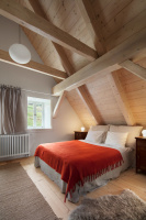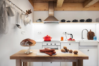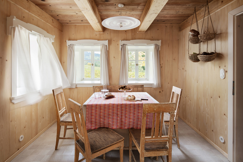 Design nábytku balancuje na hranici mezi minulostí a současností. „Kombinovali jsme záměrně několik druhů a odstínů dřev, kovy a světlé tóny, v detailu se potom prostory promítá teplá oranžová barva. Mobiliář je navržený v jednoduchém tvarování a v kvalitních materiálech kovu či masivního dřeva. Řada nábytku je vyrobena na míru truhlářskými dílnami nebo jde o repasi starých kusů nábytku a osvětlení. Ze současného designu jsme potom zvolili dánskou značku Frama - jídelní židle a osvětlení v obývacím prostoru, jemné textilní svítidlo nebo svítidlo švédského výrobce Wästberg v kuchyni,“ vypočítává interiérová designérka Denisa Kubíčková Strmisková. Zajímavý doplněk v podobě netradičních vypínačů berker R.classic v zakázkové úpravě dodával do tohoto projektu designový obchod MONOBRAND. „Tento unikátní vypínač, který v sobě kombinuje tvary a komponenty dvou zdánlivě nezkombinovatelných designových řad vypínačů berker, byl vyvinutý speciálně pro náš concept store,“ vysvětluje Katrin Grund, zakladatelka MONOBRANDU. Kulatý rámeček si tento vypínač propůjčil z řady berker R.classic, jež se svým vzhledem a respektem k minimalistickým klasickým tvarům pyšně hlásí ke stylu Bauhaus. Vypínače berker R.Classic jsou původně k dispozici s otočným kolíkem, ovšem pro tuto chaloupku byly vypínače vybaveny kulatou středovou, a navíc kolébkovou klapkou, kterou si vypůjčily od designových řad berker R.1/R.3 – což jsou vypínače, které datem svého vzniku i rebelským vzhledem v podobě kulaté klapky uprostřed čtvercového rámečku akcentují nové milénium. „V rámci našeho zakázkového výrobního programu Hager Manufaktura dokážeme plnit přání zákazníků na změnu barvy, povrchové úpravy nebo i použitého materiálu našich vypínačů,“ vysvětluje Thomas Grund, generální ředitel Hager Electro v České republice, do jejíhož portfolia vypínače berker patří. „V tomto případě je tvar i materiál použitých vypínačů ve standardní nabídce společnosti Hager, jednalo se tedy vlastně jen o zajímavou kombinaci, kdy jsme dali dohromady rámečky a klapky ze dvou designových řad, které k sobě standardně nepatří. Výsledná kombinace je ale velmi zajímavá a neotřelá a klobouk dolů před designéry za výborný nápad,“ usmívá se Thomas Grund. V interiéru chaloupky Dvě sestry byly použity vypínače berker R.classic v bílé lesklé variantě a interiéru vysloveně sluší především použití vícenásobných zakulacených rámečků. Kromě nápadných vypínačů zdobí stěny interiéru ještě ilustrace českých výtvarníků Tomski&Polanski tematicky zpracovávající prostředí Jizerských hor.