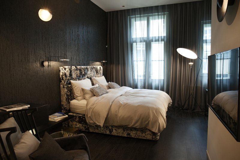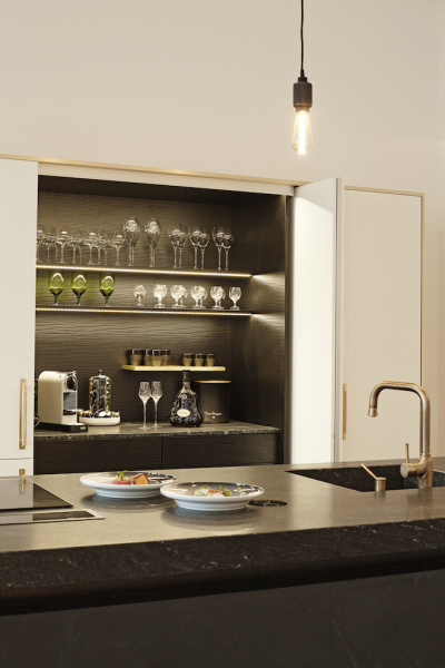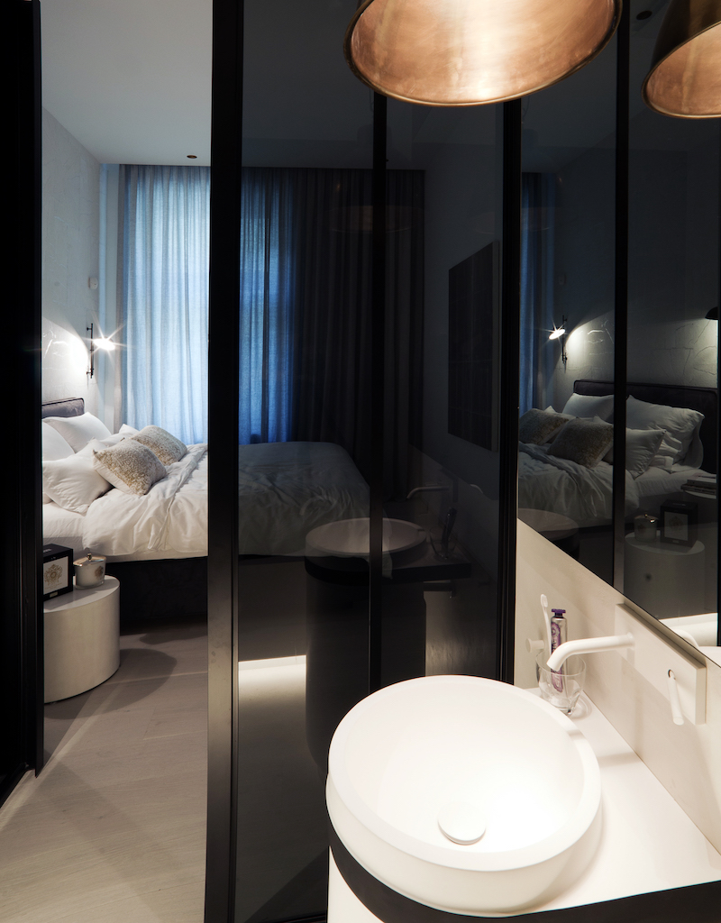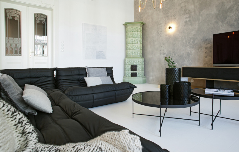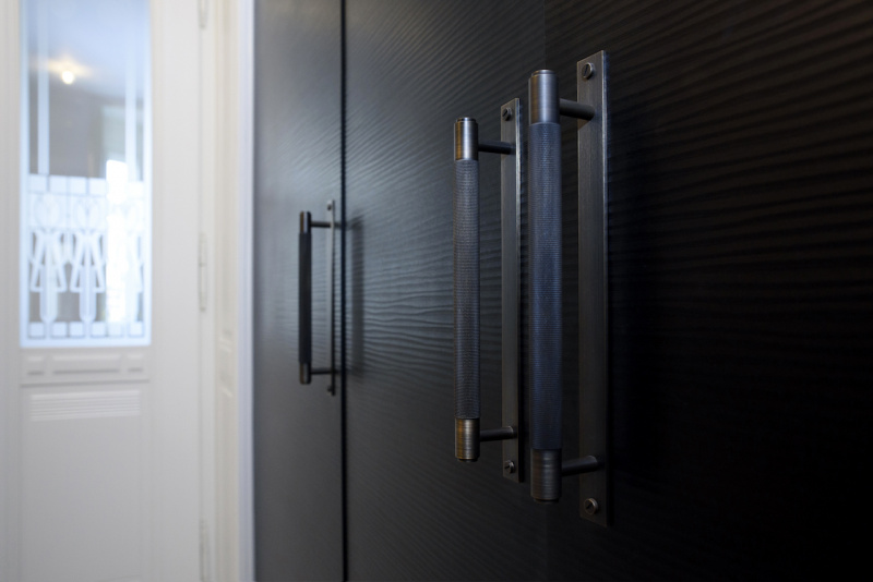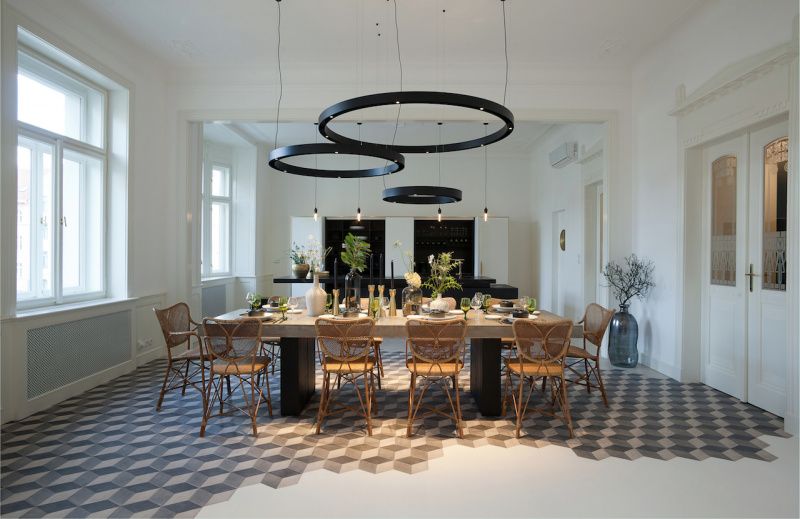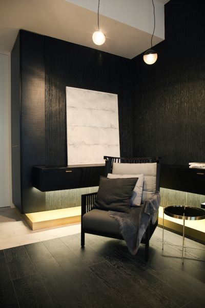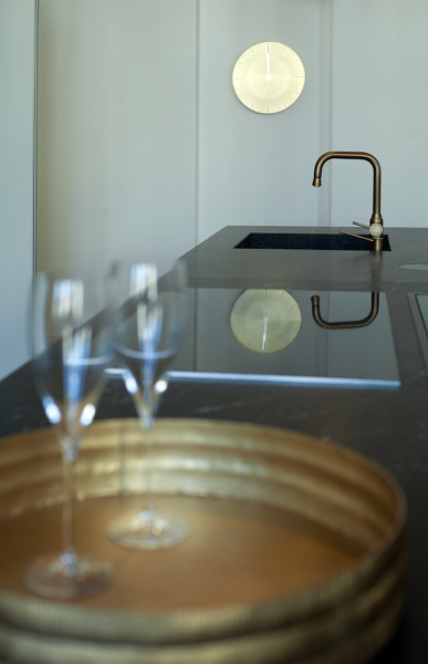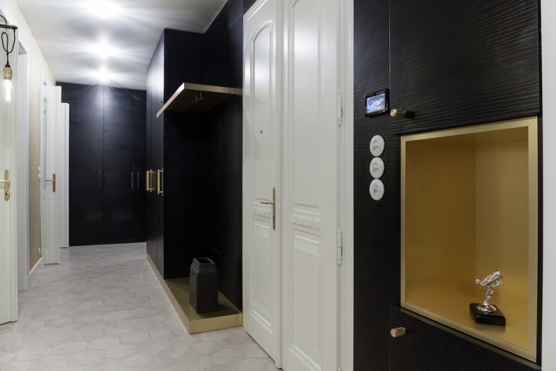 Zářivé zlato v kontrastu s černou a bílou. Takovou kombinaci zvolil pro domov podnikatele a modelky ateliér OOOOX, který na pověst Pařížské ulice plné luxusu navazuje blyštivými doplňky, interiér však nenechává překročit hranici kýče. Prvky, které vzdáleně odkazují k secesi, rozbíjí pravidelnými geometrickými tvary a surovým betonem.