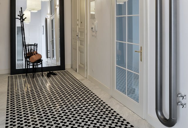 Původní velkorysý byt v secesním domě byl za dob normalizace necitlivě rozdělen na dvě bytové jednotky, které se navíc před rekonstrukcí nacházely ve velmi špatném stavu. Architektce Radce Valové ze studia oooox, která se projektu ujala ve spolupráci s architektkou Magdou Palečkovou, se podařilo oba byty opět spojit. Hlavním mottem celého konceptu se stala kombinace původních prvků a současného designu – a proto v interiéru najdete bakelitové otočné vypínače Berker Serie 1930.