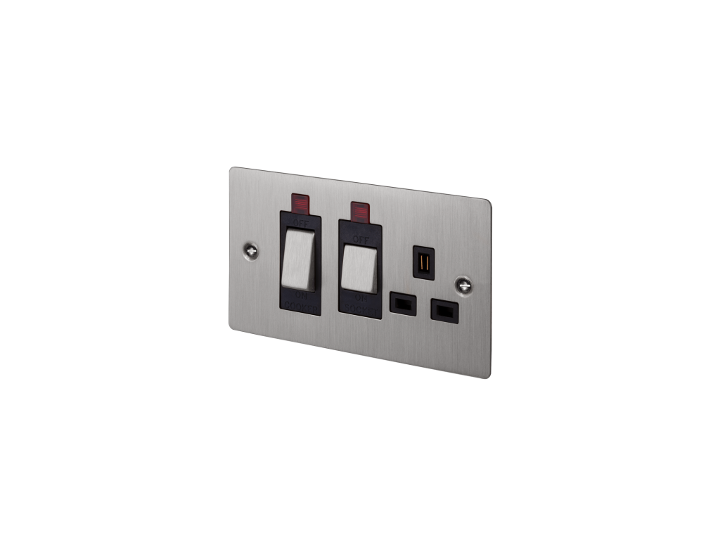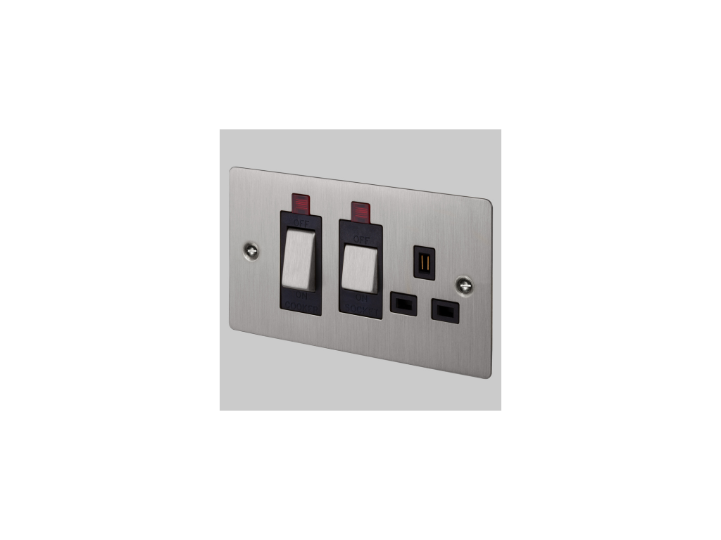 Dvoupólový vypínač 45A a zásuvka 13A s doutnavkou, povrchová úprava z masivní mosazi.