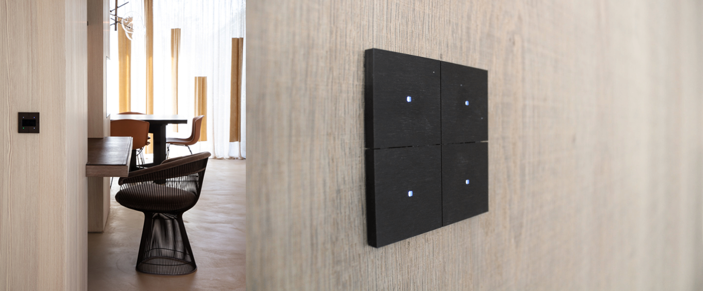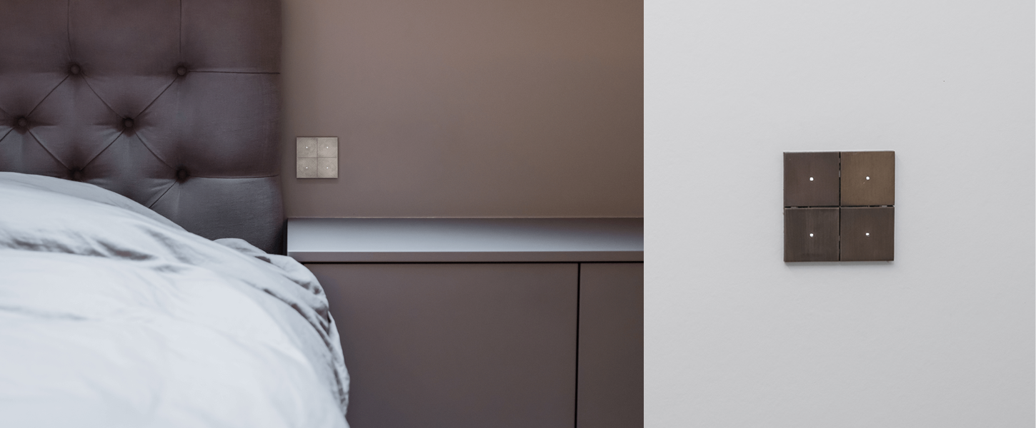 - Minimalistické nebo solitérní designové vypínače z exkluzivních materiálů (kov, mramor, dřevo, corian)